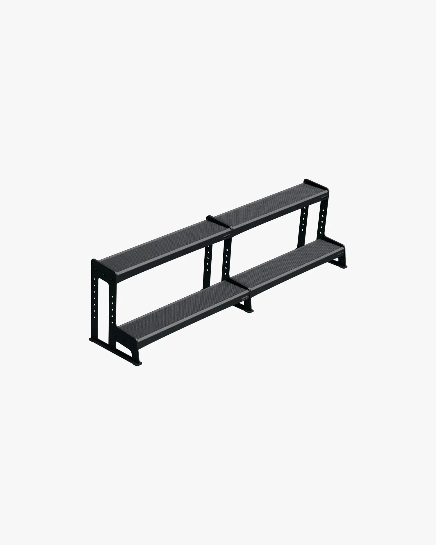 Shorter span for the smaller kettlebell collection and miscellaneous storage.