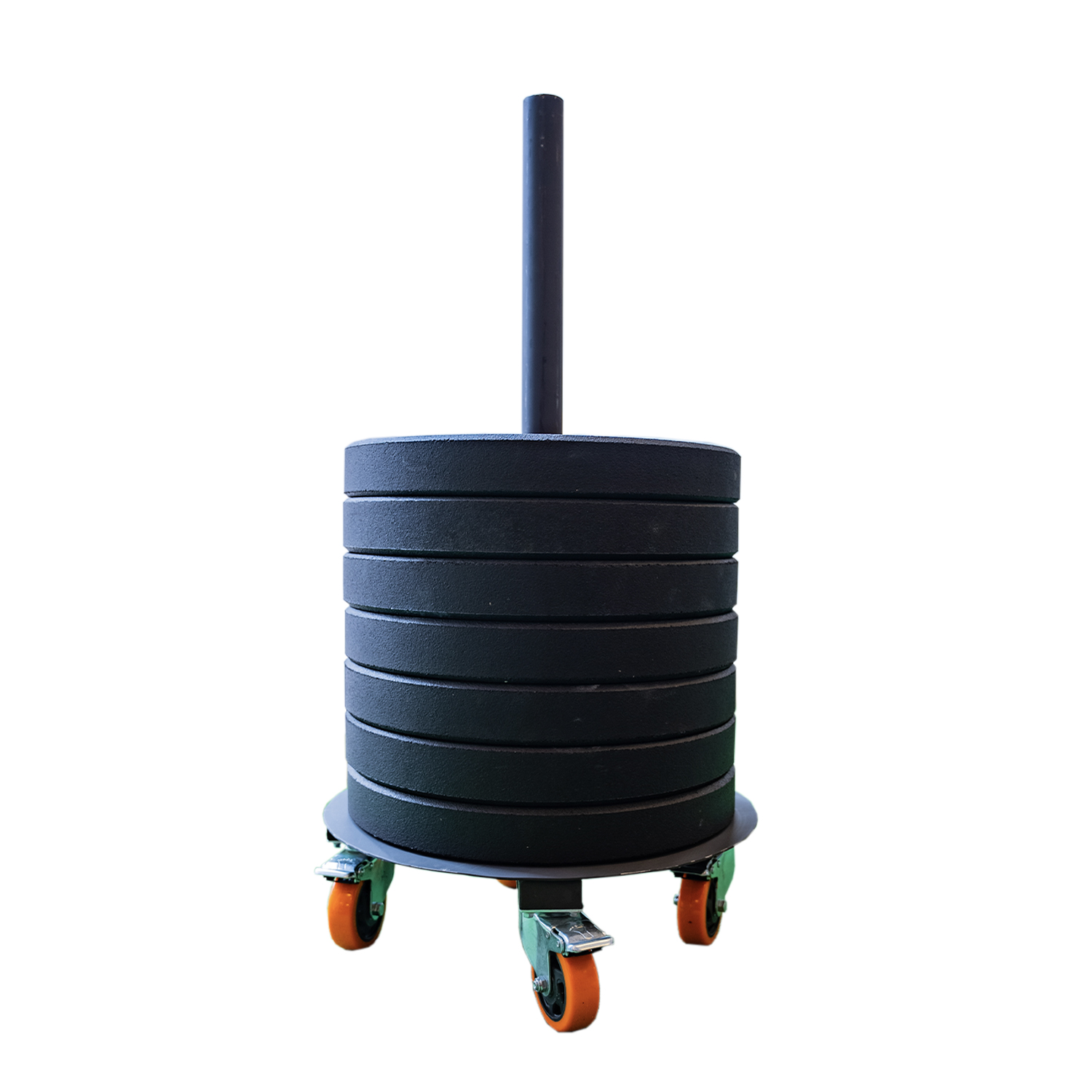 The mobile plate storage below contains wheels, and allows for easy movement of plates. The mobile storage can store up to 7 XF Eleiko bumper plates on and is easy stored in any gym facility. The storage makes it easy to transport plates from the place of lifting to storage area.