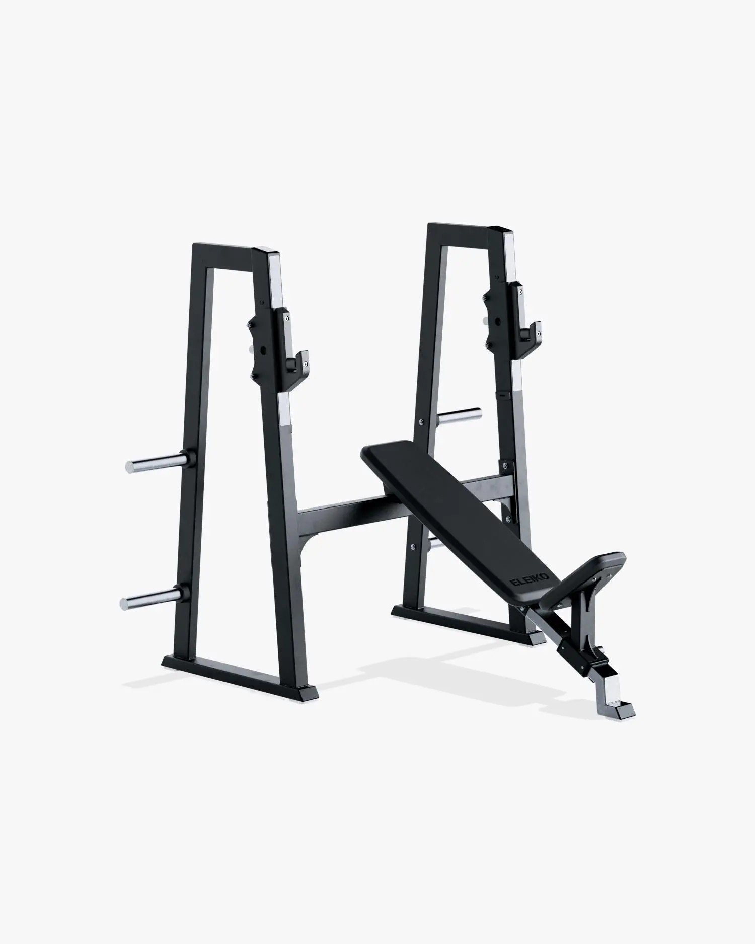 The Eleiko Olympic Incline Bench is used to develop upper body strength in an incline position. Designed with both the use and the facility in mind, the incline bench combines user-friendly features with smart details to ensure safety and minimize maintenance. It features ten height adjustments for the barbell hooks and an adjustable seat pad so users can find the optimal starting and ending position. The barbell hooks feature built-in polyurethane rollers to protect the bar and allow lifters to easily shift the bar position before lifts. The integrated weight storage pins keep weights conveniently at hand and the lifting area clutter free. Bolt down holes are hidden within the frame to maintain a sleek appearance while providing important added stability to ensure user safety.